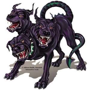希腊神话中的地狱犬,为百手巨人提丰众妖之祖与蛇身女怪厄客德娜所生的猛犬,长有三个头和龙的尾巴,负责守卫地狱大门和阻止亡灵离开。喜欢甜食,所以古希腊人死后的随葬品里会有蜂蜜蛋糕,死者用以讨好它以免被咬。