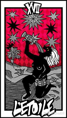 经历高塔的变动之后,现在已进入宁静状态。星星是一张代表对自己及对人生的各种可能性深具信心的牌。在经历一番情感的动乱之后,一种和平及空虚的感觉随即回来。这并不是一种负面的空虚感,而是没什么特别的事情需要去担心或解决。在高塔中经常发现的迫切感,如今已被一种沉静、和平的感觉所取代了。